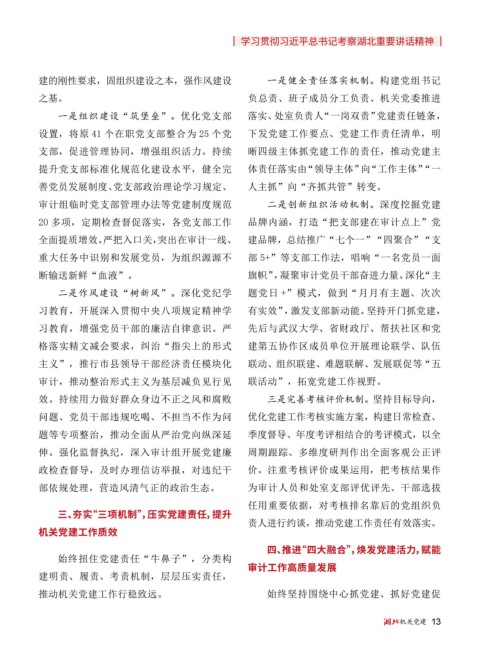 审计组临时党支部管理办法等党建制度规范 二是创新组织活动机制。深度挖掘党建