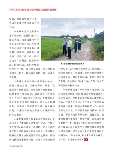 二是推进党建与廉洁从审深度融合。 产业等,推动帮扶工作由“输血”到“造血”