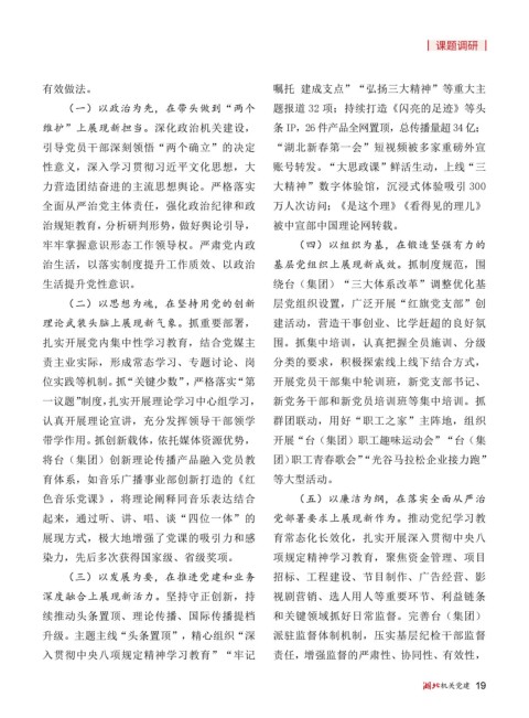 (三)以发展为要,在推进党建和业务 招标、工程建设、节目制作、广告经营、影