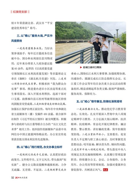 章在《旗帜》《湖北机关党建》刊发。二是用 沟通协作,圆满完成长江防总指挥长会议、长