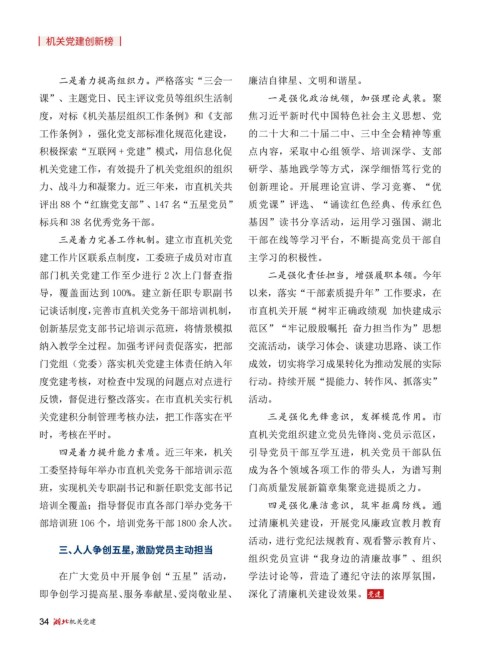 四是着力提升能力素质。近三年来,机关 引导党员干部互学互进,机关党员干部队伍
