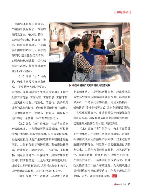 全过程。廉政风险排查要覆盖机关事务工作的 警监测体系。一是强化预警研判。对腐败现象