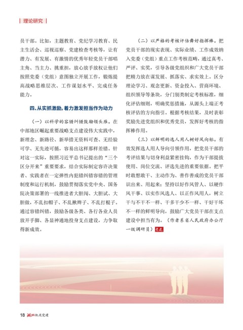 (一)以科学的容错纠错鼓励领头雁。在 奖励先进党组织和优秀党员,发挥好考核的指
