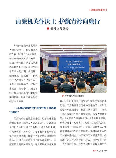 教育为年轻干部注入“廉洁基因”,让清廉理 让责任传导“无死角”。构建“厅党委负总责、