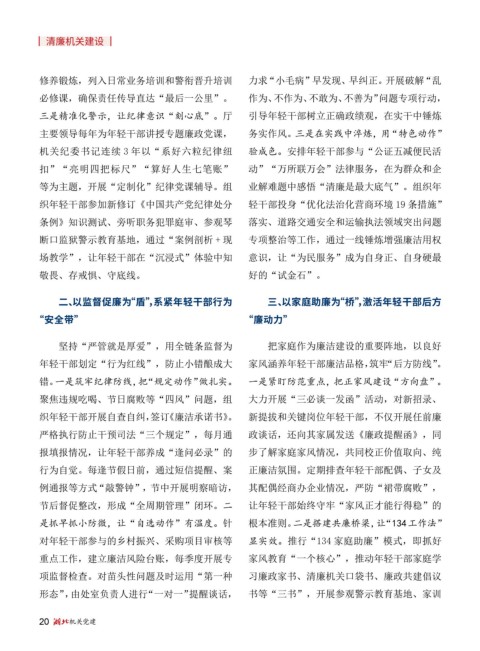 二、以监督促廉为“盾”,系紧年轻干部行为 三、以家庭助廉为“桥”,激活年轻干部后方