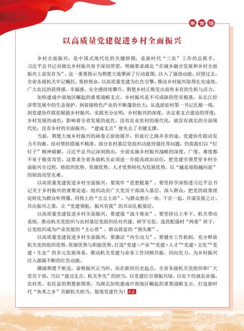 当前,荆楚大地乡村振兴的画卷正徐徐展开,但前行之路并非坦途,党建协作联动发