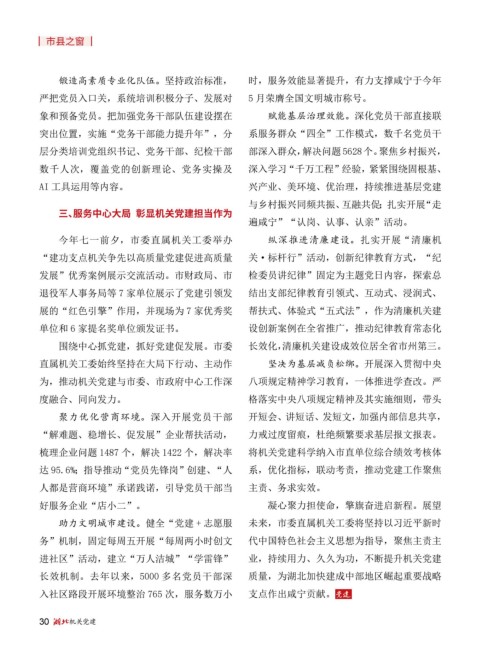 围绕中心抓党建,抓好党建促发展。市委 长效化,清廉机关建设成效位居全省市州第三。