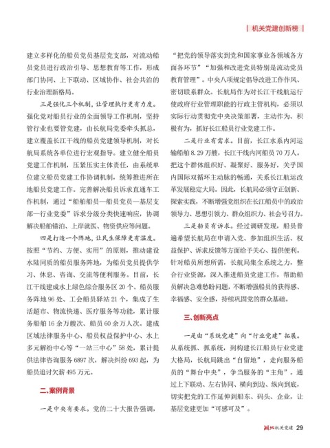 作机制,通过“船舶船员—船员党员—基层支 探索实践,不断增强党组织在长江船员中的政治