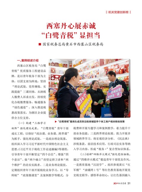 矩阵”强化理论武装。“白鹭青税”青年干部 税费种开展专题学习和案例教学,着力提升干