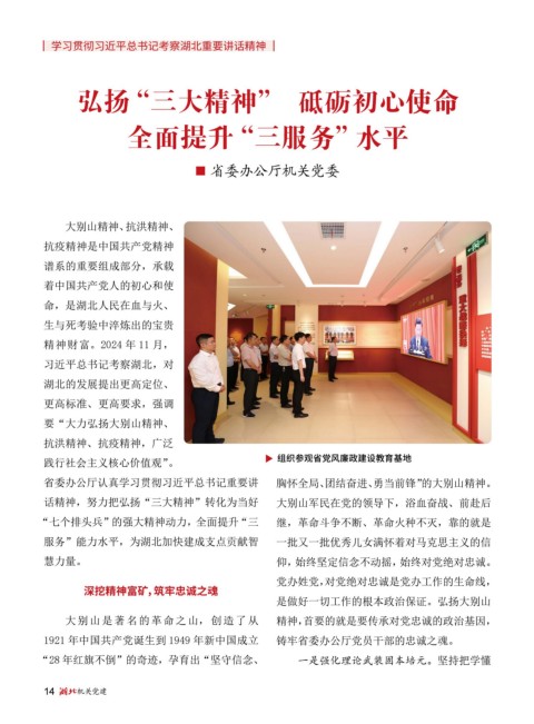 省委办公厅认真学习贯彻习近平总书记重要讲 胸怀全局、团结奋进、勇当前锋”的大别山精神。