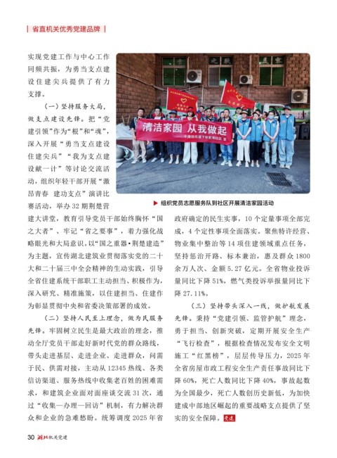 赛活动,举办 32 期荆楚营 组织党员志愿服务队到社区开展清洁家园活动