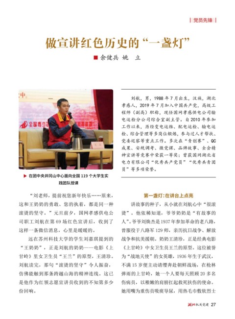 司职工刘航在第 69 场红色宣讲后,收到了 人”。爷爷刘焕杰是 1937 年参加革命的老八路,