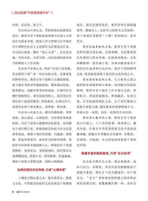 与文化。丰厚肥沃的组织文化传统是干部健康 要的资源支持,要像灌溉作物一样,及时为
