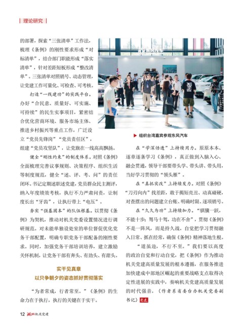 闭环。书记定期述职述党建,党员群众民主测评, 在“真抓实改”上持续发力。对照《条例》