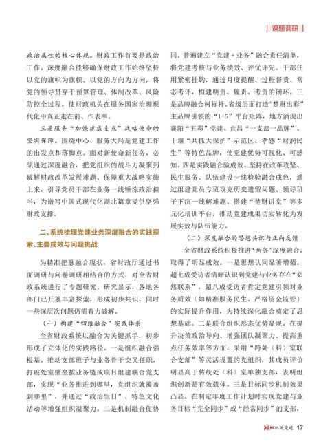 工作。深度融合能够确保财政工作始终坚持 将党建考核与业务绩效、评优评先、干部任