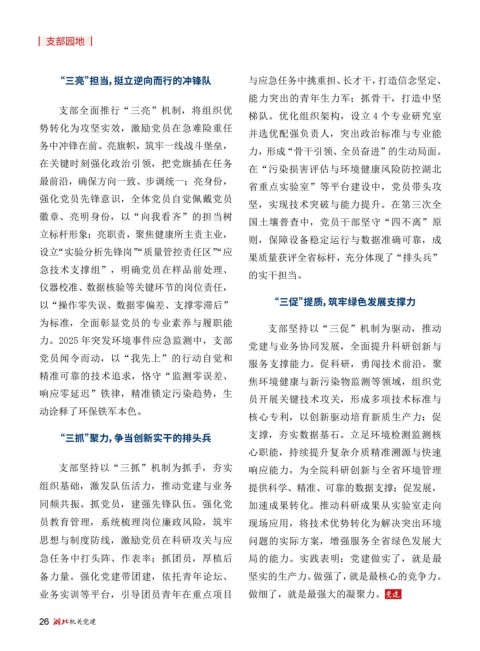 支部坚持以“三抓”机制为抓手,夯实 响应能力,为全院科研创新与全省环境管理