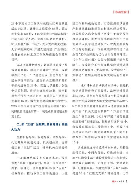 报专栏刊发“建功支点 奋勇争先”党员先 率达 30%。随州市气象局等 3 个机关党建品
