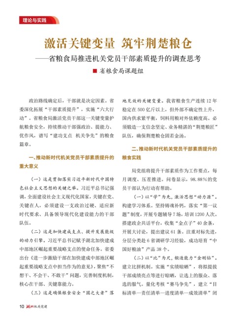 一、推动新时代机关党员干部素质提升的 粮食实践
