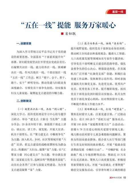 “五在一线”工作法,树立“想干、会干、善干、