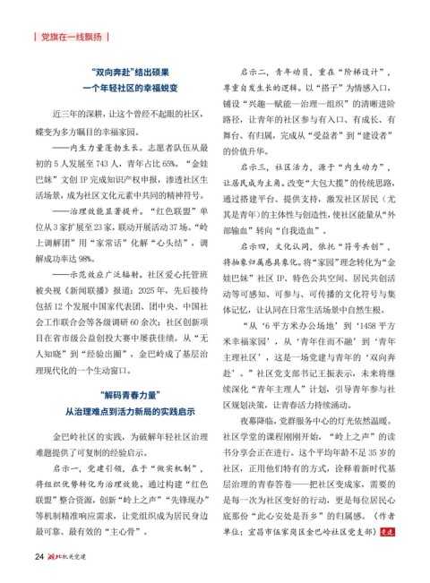人知晓”到“经验出圈”,金巴岭成了基层治 主理社区’,这是一场党建与青年的‘双向奔