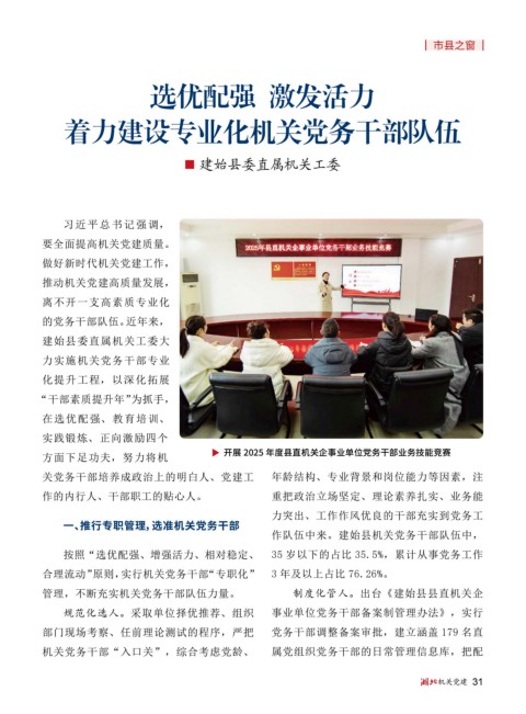 管理,不断充实机关党务干部队伍力量。 制度化管人。出台《建始县县直机关企