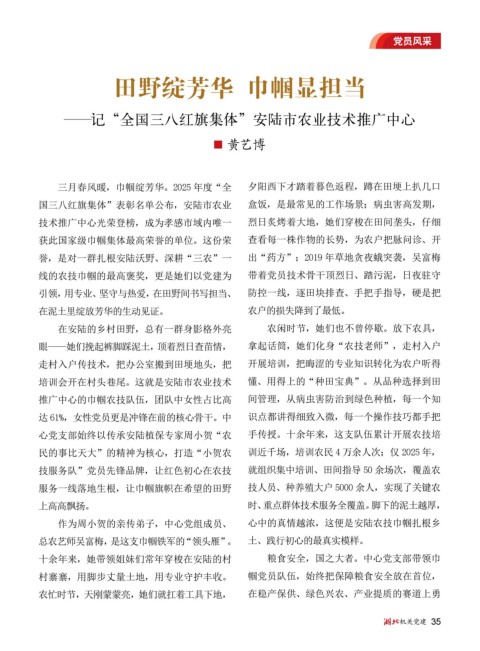 十余年来,她带领姐妹们常年穿梭在安陆的村 粮食安全,国之大者。中心党支部带领巾