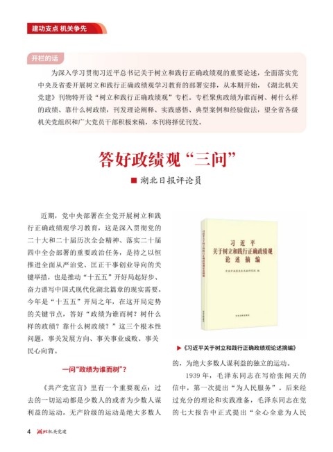 中央及省委开展树立和践行正确政绩观学习教育的部署安排,从本期开始,《湖北机关