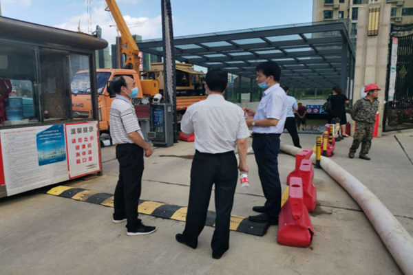 7月7日,受强降雨影响,积水倒灌到金都九龙城小区地下停车场,眼看排水问题一时半会难以解决,市委组织部、市委编办下沉工作队和社区干部一边动员居民临时投亲靠友,一边组织志愿者为在家的老年居民送水上门。排水设备协调到位,工作队队员和社区干部、供电、水务等部门工作人员一起,连夜抢排停车场积水。排水结束后,大家又一起组织抢运渣土,为停车场筑起防水墙。