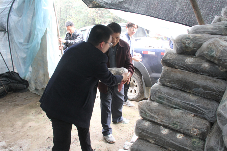 曾小平同志先后深入村民和村集体的袋料香菇大棚查看首茬香菇出菇情况,与正在采摘、剪蒂的群众亲切交谈,到冻库和烘干机前查看鲜菇保存、烘干情况,了解香菇销售工作对接情况等。