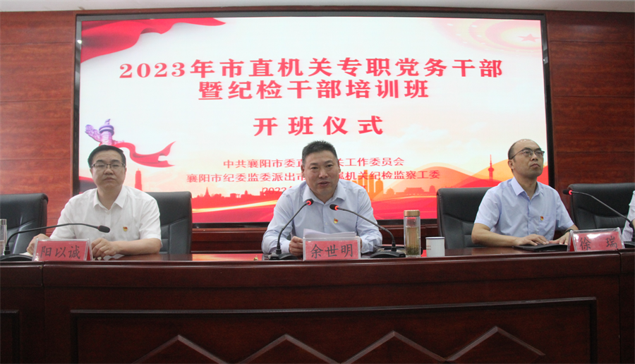 7月4日上午,2023年襄阳市直机关专职党务干部暨纪检干部培训班在保康县尧治河党员干部教育基地开班。襄阳市委常委、市纪委书记、市监委主任余世明出席开班式并作动员讲话,市直各单位直属机关党委(机关党委)专职副书记、机关纪委专职副书记,机关党总支(支部)组织委员或纪检委员,新疆博州精河县党务干部,以及市委直属机关工委、市纪委监委派出市委直属机关纪检监察工委干部等190余人参加培训。