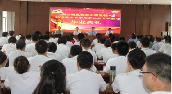 结业典礼上,三名学员代表本班汇报了培训学习情况与成果;各班学员进行了经典传唱的汇报展示;副校长秦岩宣读了《中共湖北省委省直机关工委党校关于表彰2018年春季学期第二期主体班优秀学员的决定》。