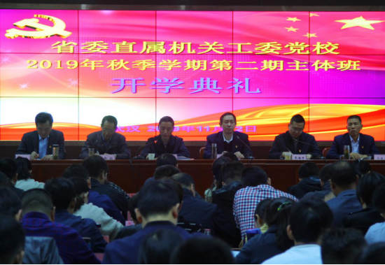 11月12日上午,省委直属机关工委党校举行了2019年秋季学期第二期主体班开学典礼。省委直属机关工委组织部部长张新民出席典礼并作开班动员报告,省委组织部干部教育处副处长张海涛出席典礼。开学典礼由省委直属机关工委党校校长邹德文主持。副校长秦岩、马生勇、王金钟出席典礼。