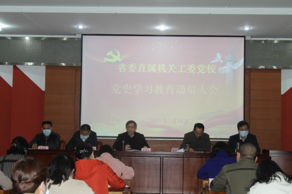 邹德文同志以《学习百年党史  汲取奋进力量》为题,围绕贯彻落实中央、省委和工委关于党史学习教育的部署和安排,突出学党史、悟思想、办实事、开新局,就抓好工委党校党史学习教育强调。一要深刻认识开展党史学习教育的重要意义,增强开展学习教育的思想自觉、政治自觉和行动自觉。要深刻领会在全党集中开展党史学习教育正当其时十分必要,深刻领会省委开展党史教育的部署要求,增强开展党史学习教育的责任感使命感。二要准确把握党史学习教育的目标任务,高标准高质量完成学习教育各项任务。要把握党史学习教育的目的要求,坚持学史明理、学史增信、学史崇德、学史力行。要明确学习内容,深刻铭记中国共产党百年奋斗的光辉历程,深刻认识中国共产党为国家和民族作出的伟大贡献,深刻感悟中国共产党始终不渝为人民的初心宗旨,系统掌握中国共产党推进马克思主义中国化形成的重大理论成果,学习传承中国共产党在长期奋斗中铸就的伟大精神,深刻领会中国共产党成功推进革命、建设、改革的宝贵经验。三要强化责任担当,切实增强教育实效。开展专题学习活动,坚持校委中心组引领学、教育基地实践学、支部集中深入学、青工委交流学、搭建平台自主学,加强政治引领,组织专题培训,开展好“我为群众办实事”实践活动和专题组织生活会等活动。