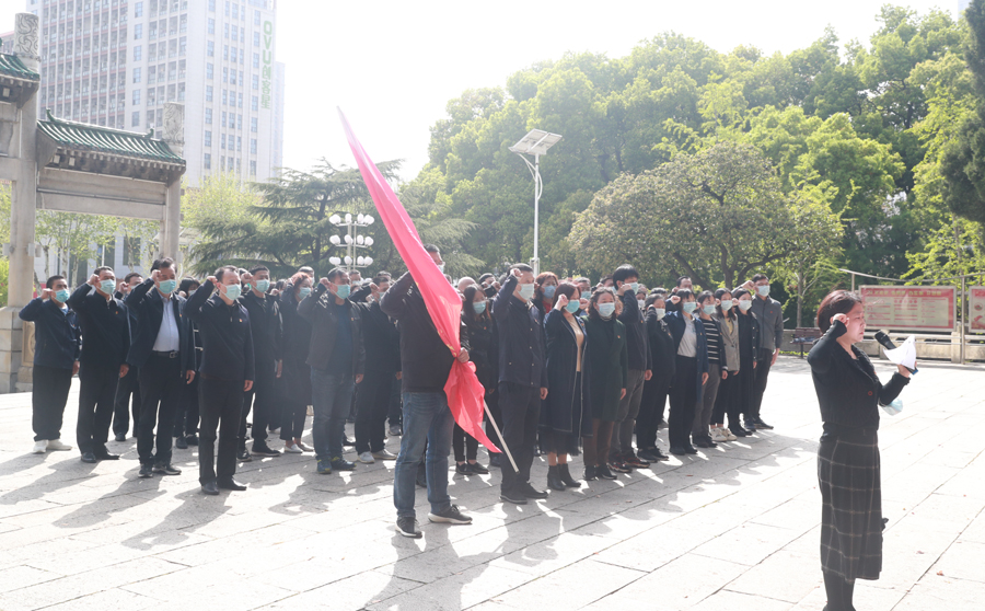 默哀完毕后,全体党员面向党旗和施洋烈士雕像,高举右拳,重温入党誓词。“我志愿加入中国共产党,拥护党的纲领,遵守党的章程……”一句句铿锵誓言,在陵园内回响,声声嘹亮、字字千钧,表达着全体党校人继承革命先烈遗志,忠实履行新时代职责使命任务,为党育才、为党献策,为国家富强、民族振兴、人民幸福而奋斗的坚定决心。