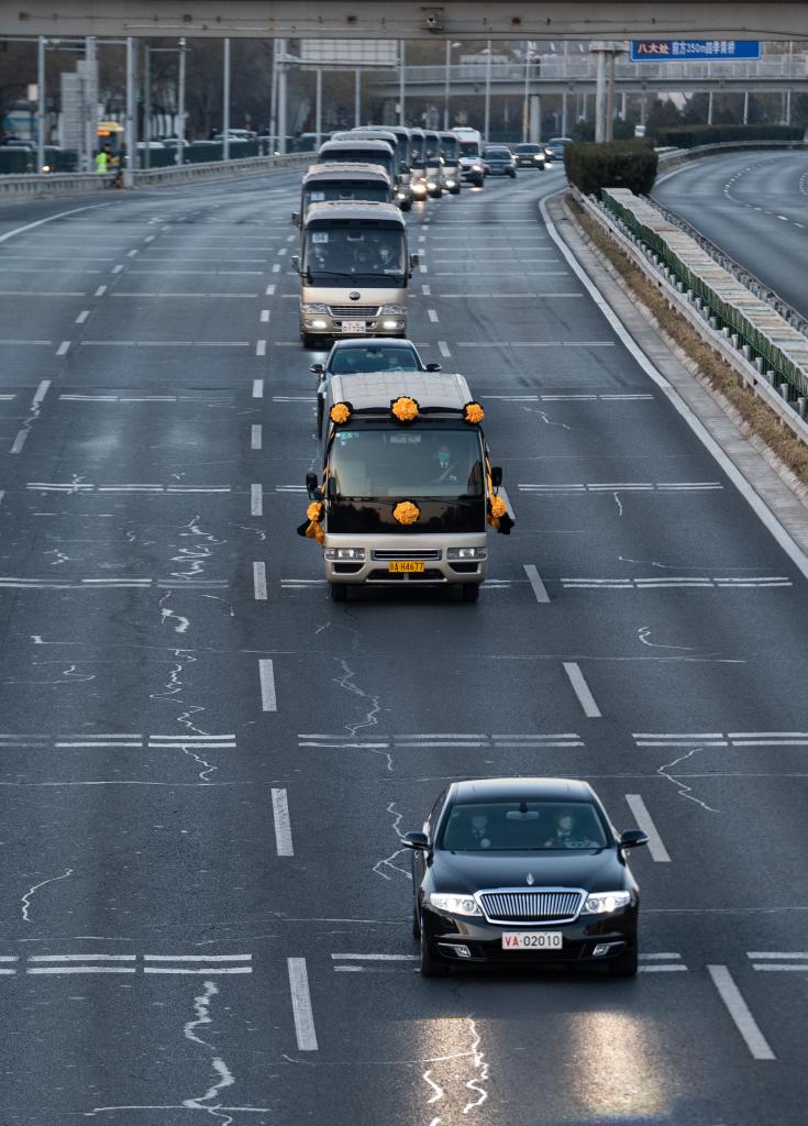 12月1日,江泽民同志的遗体从上海由专机敬移到达北京。习近平、李克强、栗战书、汪洋、李强、赵乐际、王沪宁、韩正、丁薛祥、李希、王岐山等党和国家领导同志到北京西郊机场迎灵。蔡奇等从上海护送江泽民同志遗体回到北京。新华社记者 谢环驰 摄