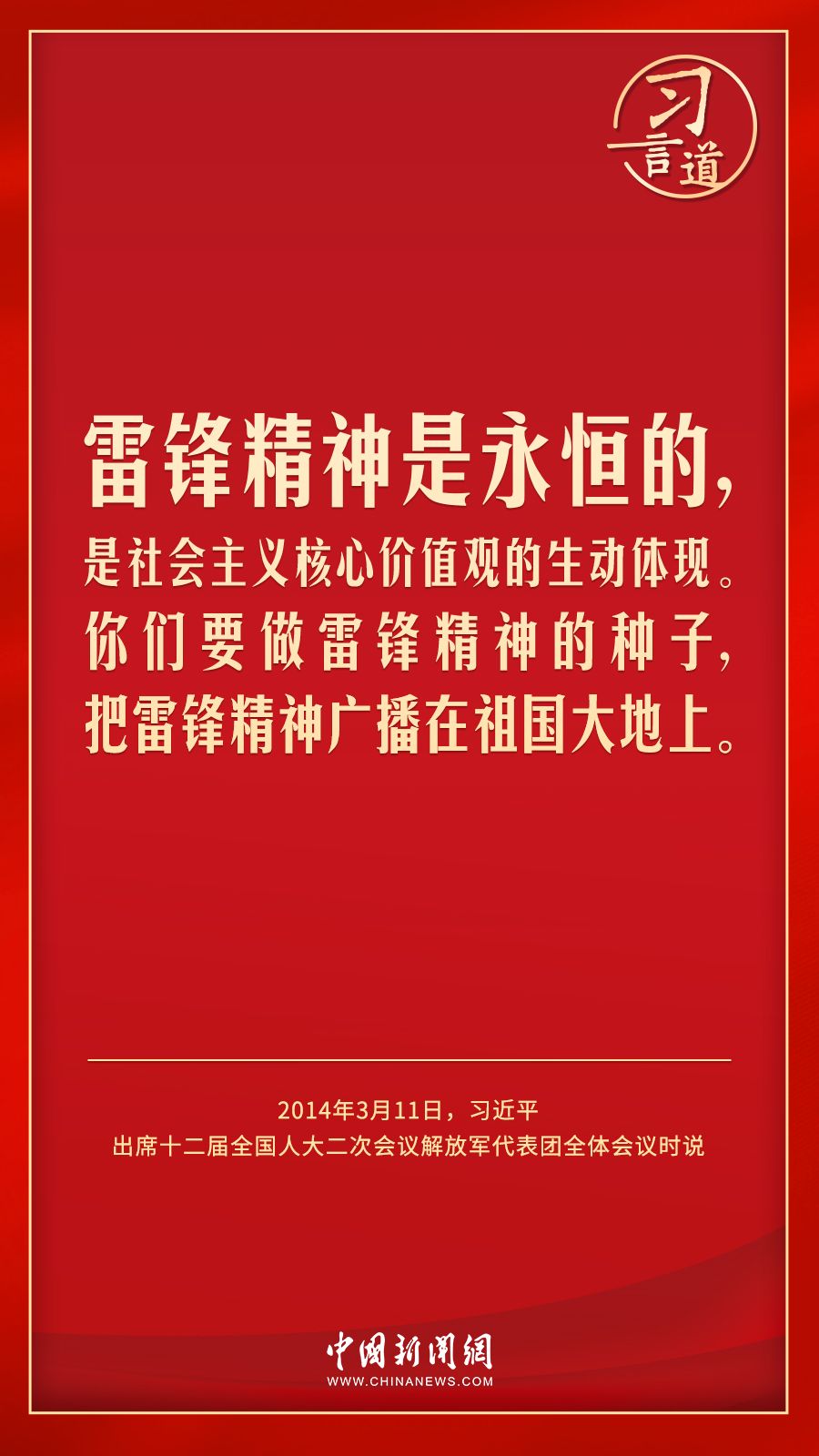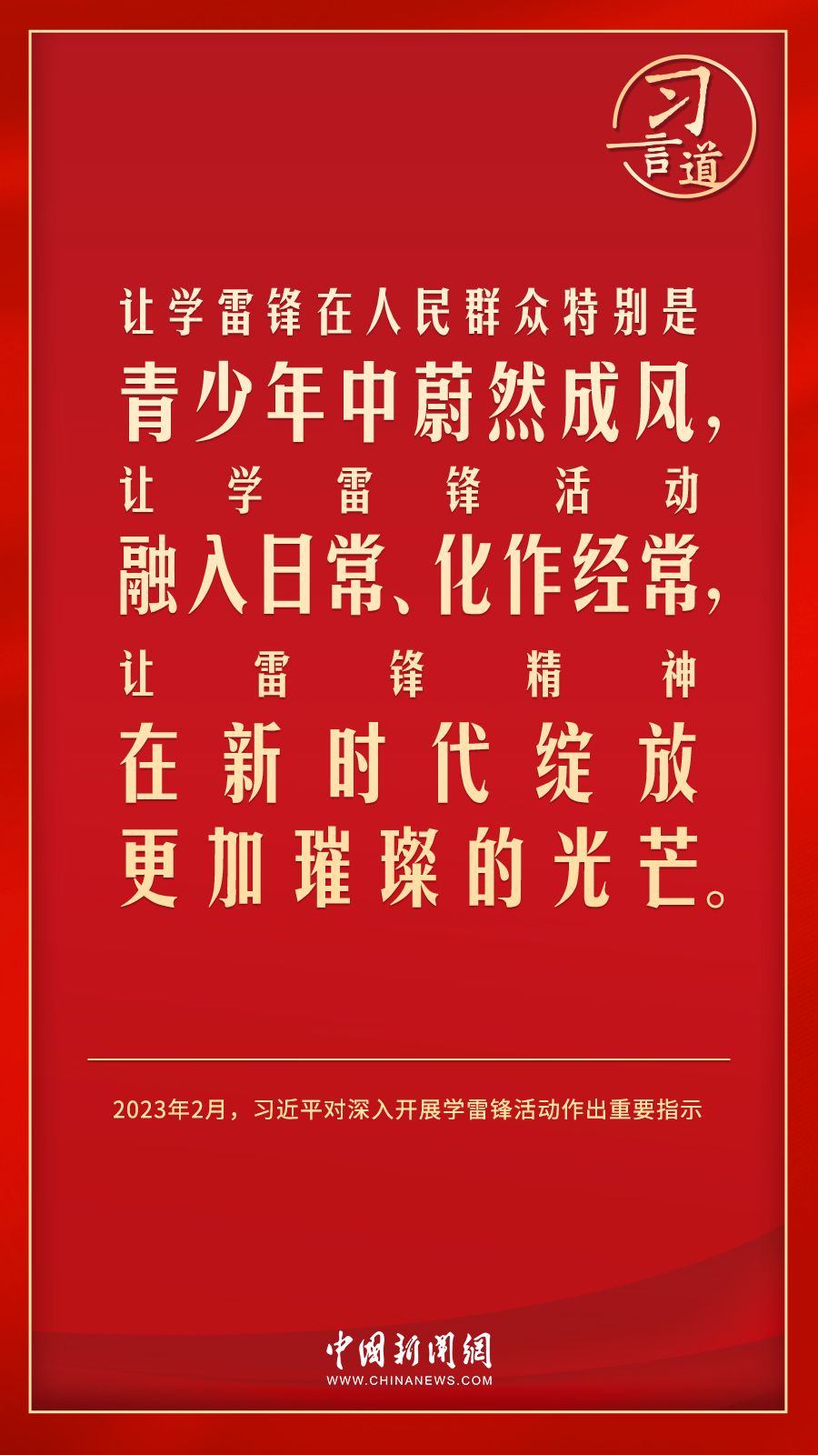 习言道|让学雷锋活动融入日常、化作经常