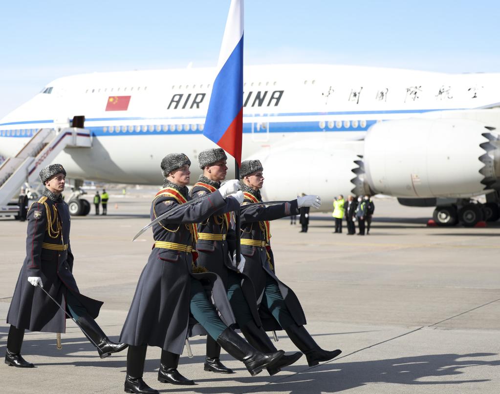 新华社莫斯科3月20日电 3月20日,莫斯科暖阳高照。当天下午,国家主席习近平乘专机抵达莫斯科,开始对俄罗斯进行国事访问。俄方在机场举行隆重迎宾仪式。