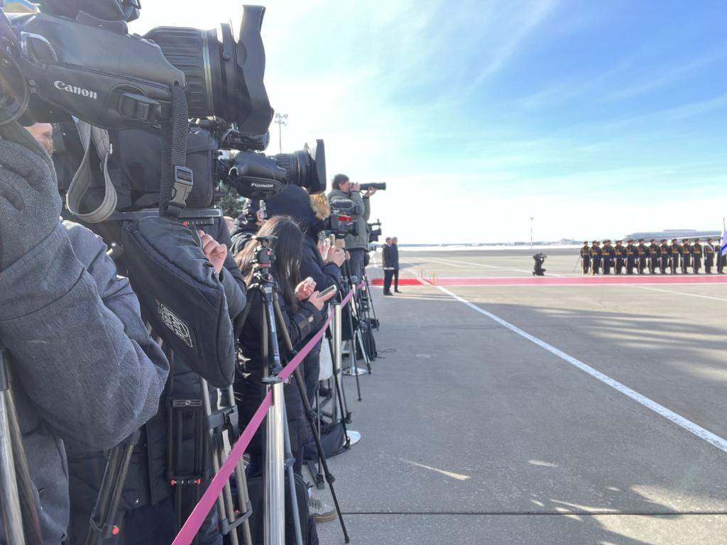 抵达时,俄方在机场举行隆重迎宾仪式。