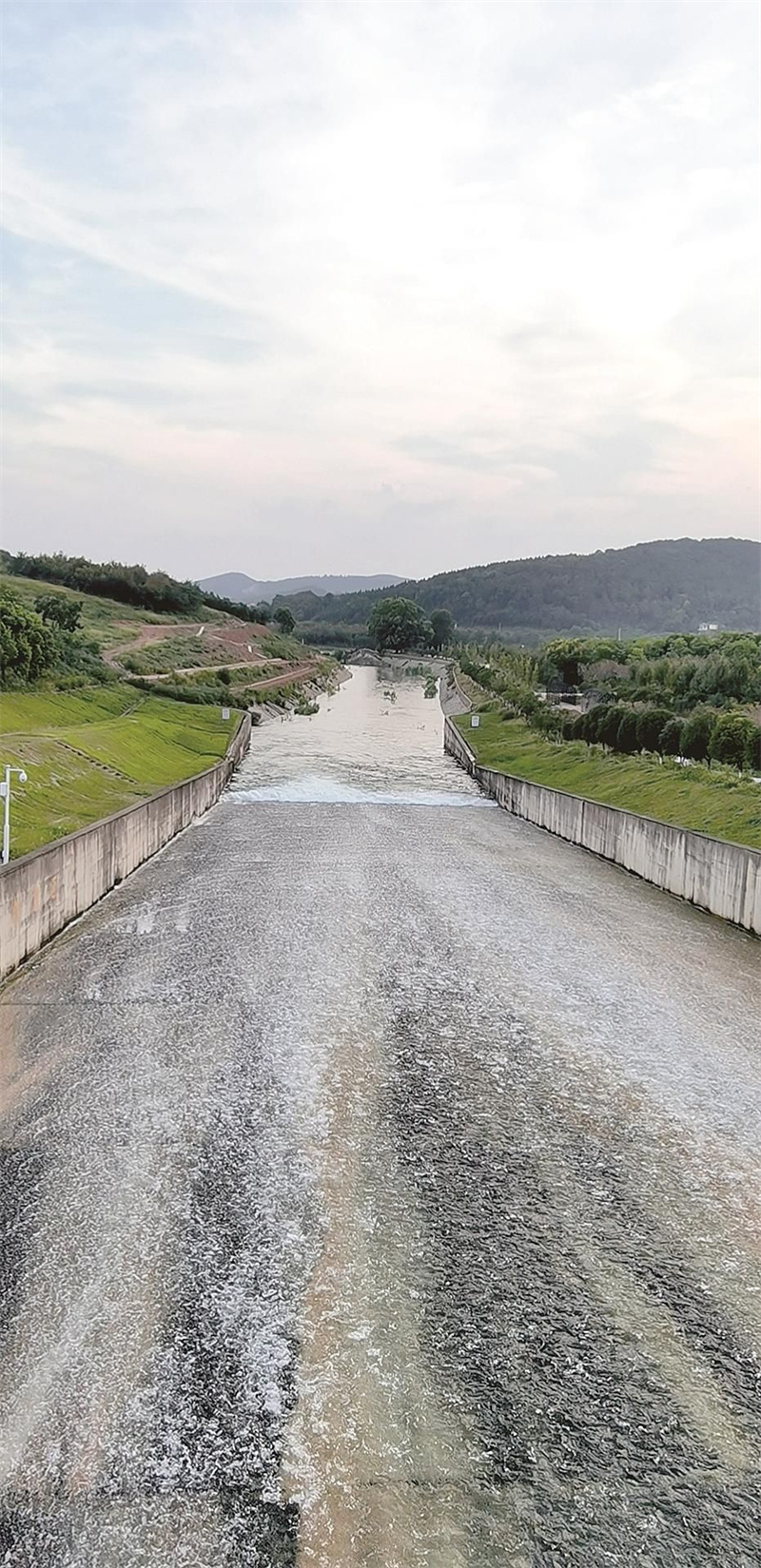 吴岭水库通过溢洪道向天门市补水 图片由吴岭水库管理局提供