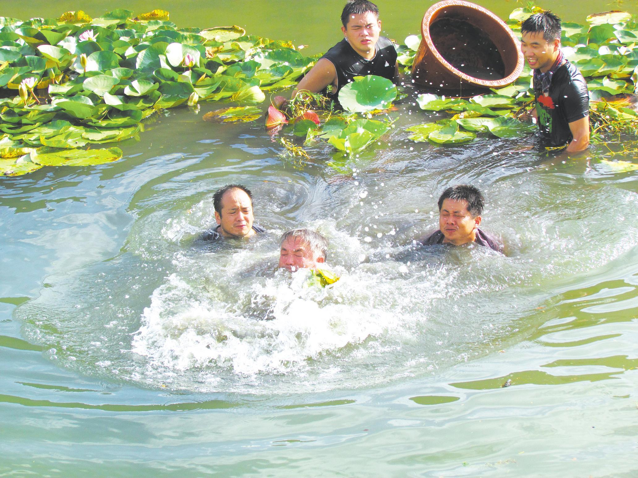 种草必须得会潜水,一个猛子扎下去,把草栽进泥里。每每栽完,大家的口鼻都黑乎乎的。